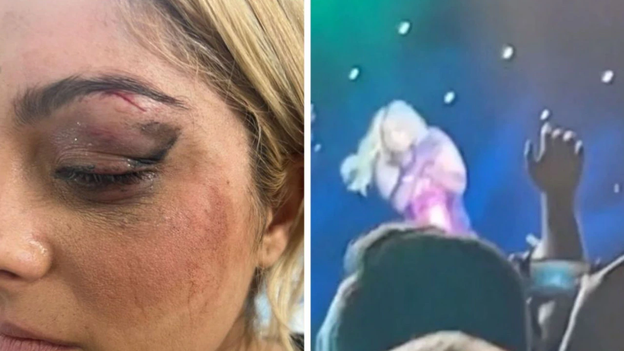 The singer shared a photo of her bruised and stitched eye on social media, telling her fans she is fine.