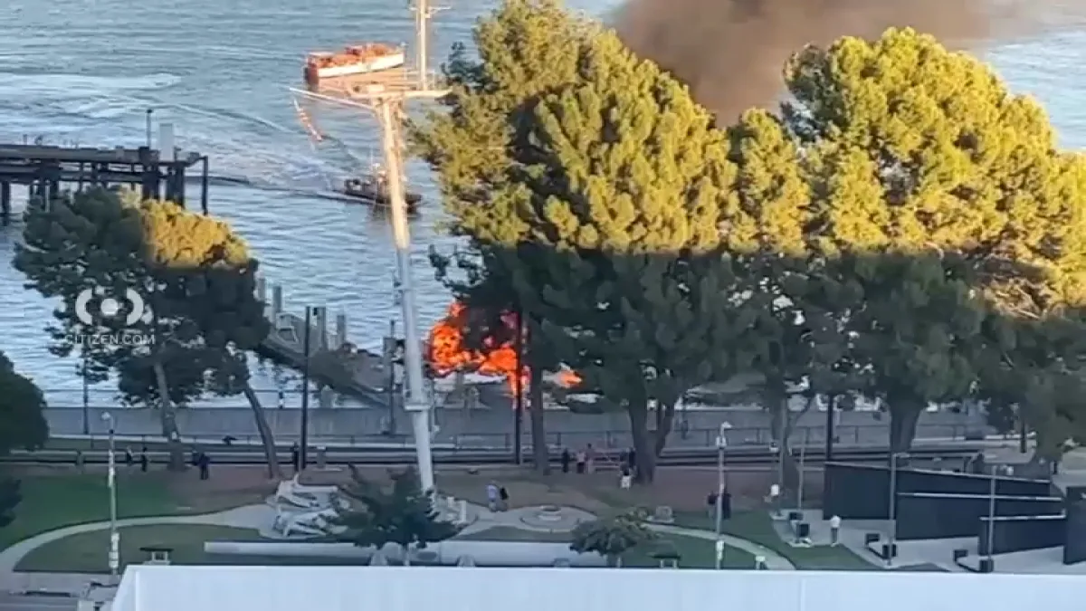 The Los Angeles Fire Department said the fire started at 4:08 p.m. in Berth 85, near the Los Angeles Maritime Museum on Harbor Boulevard between Fifth and Sixth streets.