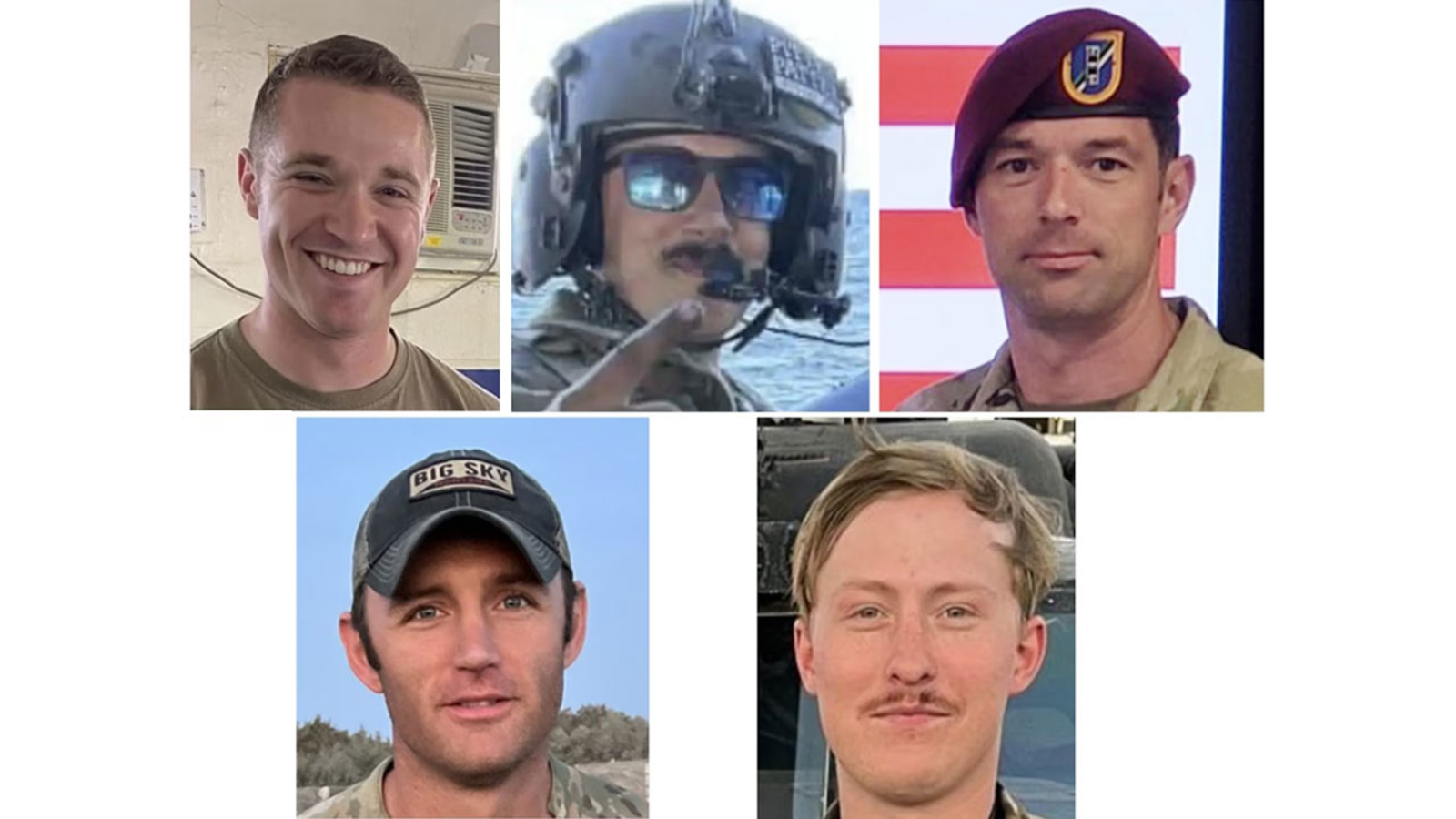 On Monday, the Department of Defense released the names of the service members: Chief Warrant Officer 3 Stephen R. Dwyer, 38, from Clarksville, Tennessee; Chief Warrant Officer 2 Shane M. Barnes, 34, from Sacramento, California; Staff Sgt. Tanner W. Grone, 26, from Gorham, New Hampshire; Sgt. Andrew P. Southard, 27, from Apache Junction, Arizona; and Sgt. Cade M. Wolfe, 24, from Mankato, Minnesota.