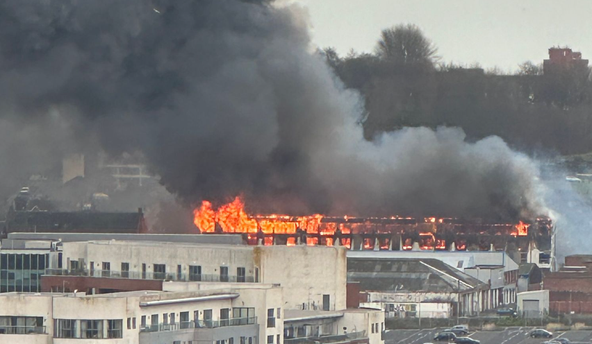 Firefighters said a four-storey building that was 100 metres by 50 metres was “fully ablaze”.